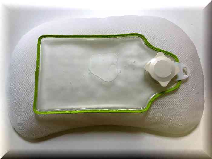 水枕には氷を入れて生理冷却0度を保ち さらに水平に保持できることから施術後などの姿勢保持に使用しています>